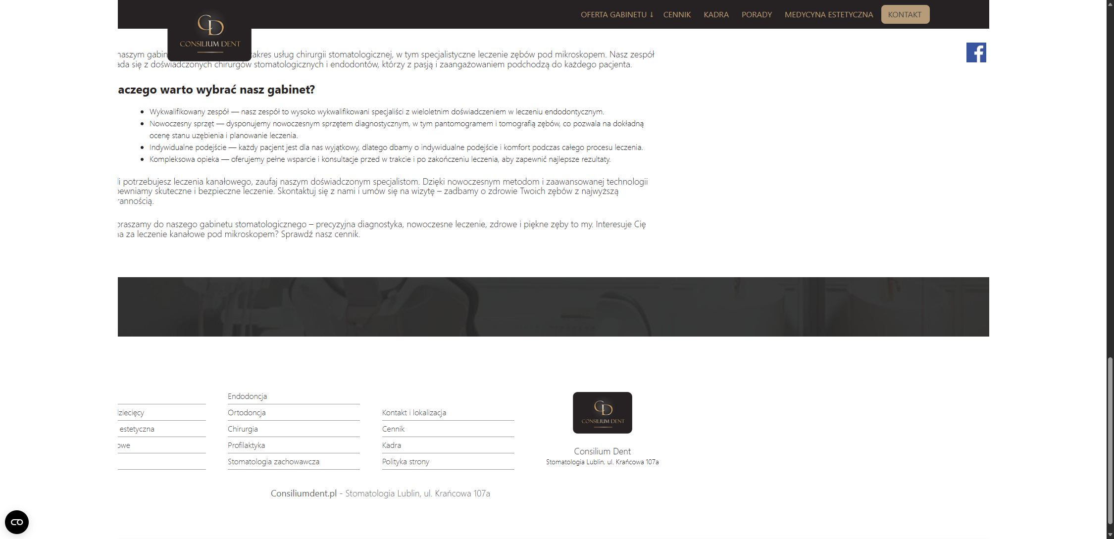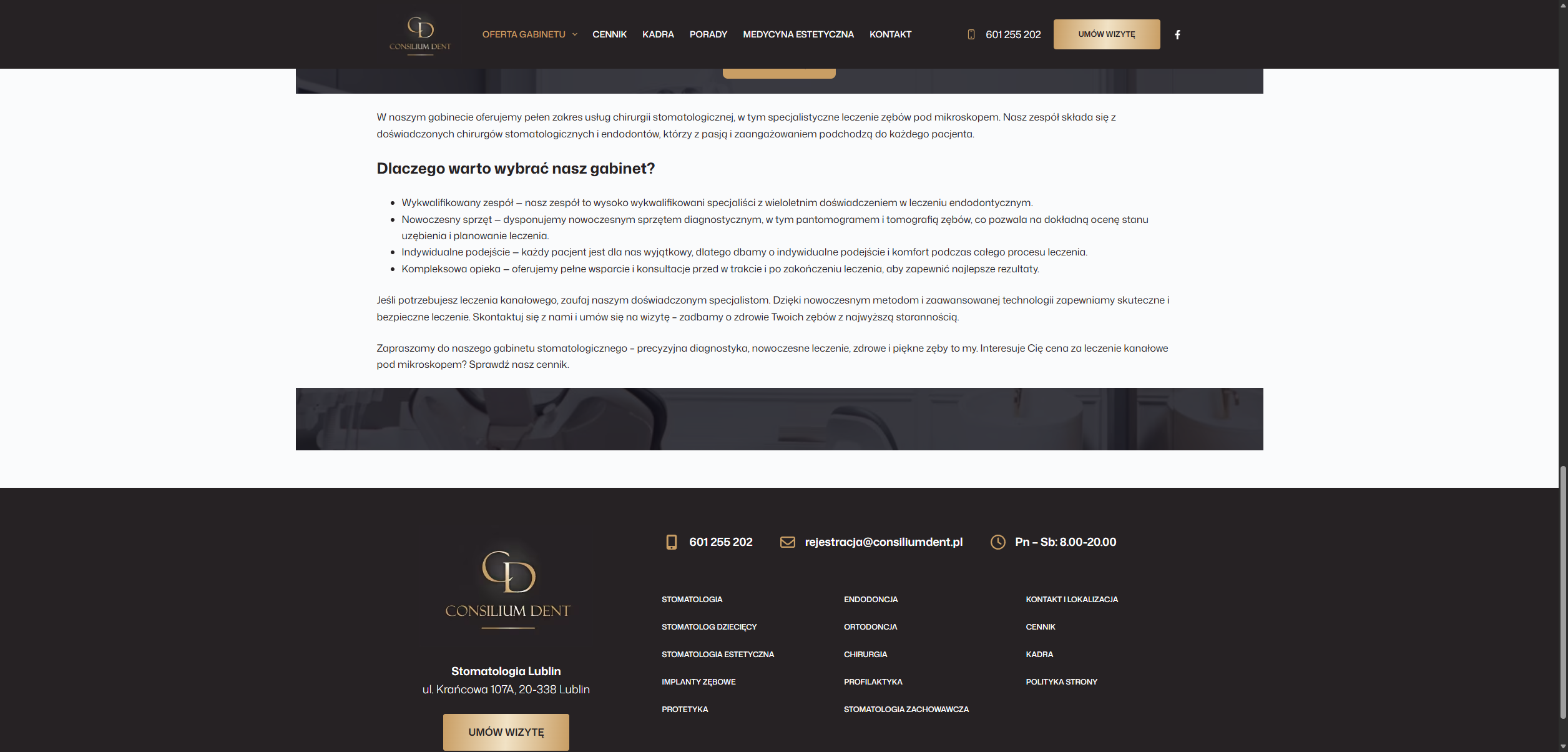 Równie ważna jest dostępność kontaktu. Gdy numer telefonu lub przycisk Umów wizytę są słabo widoczne albo trudno je znaleźć, część osób po prostu rezygnuje i wraca do wyników wyszukiwania.